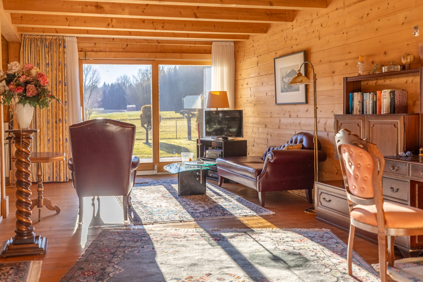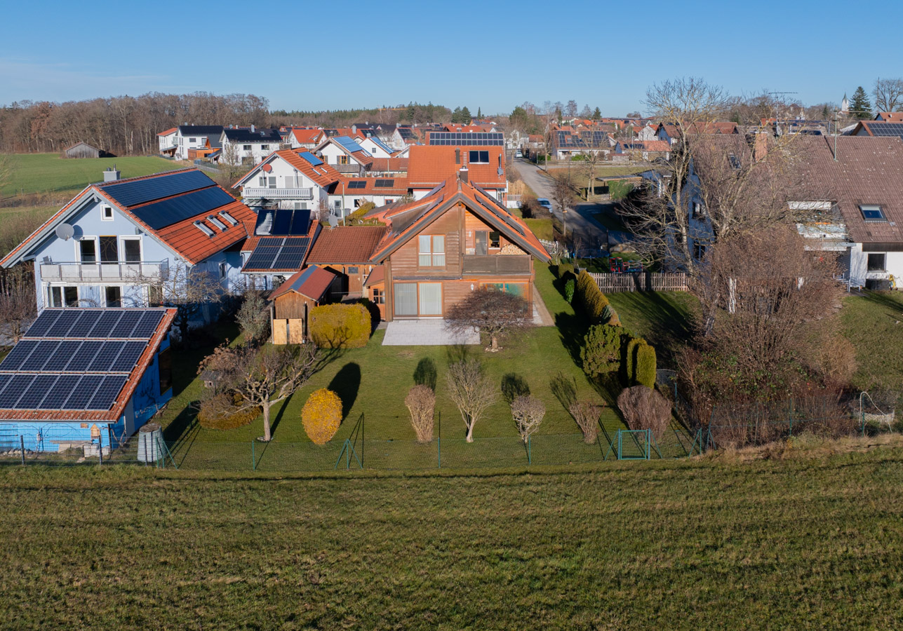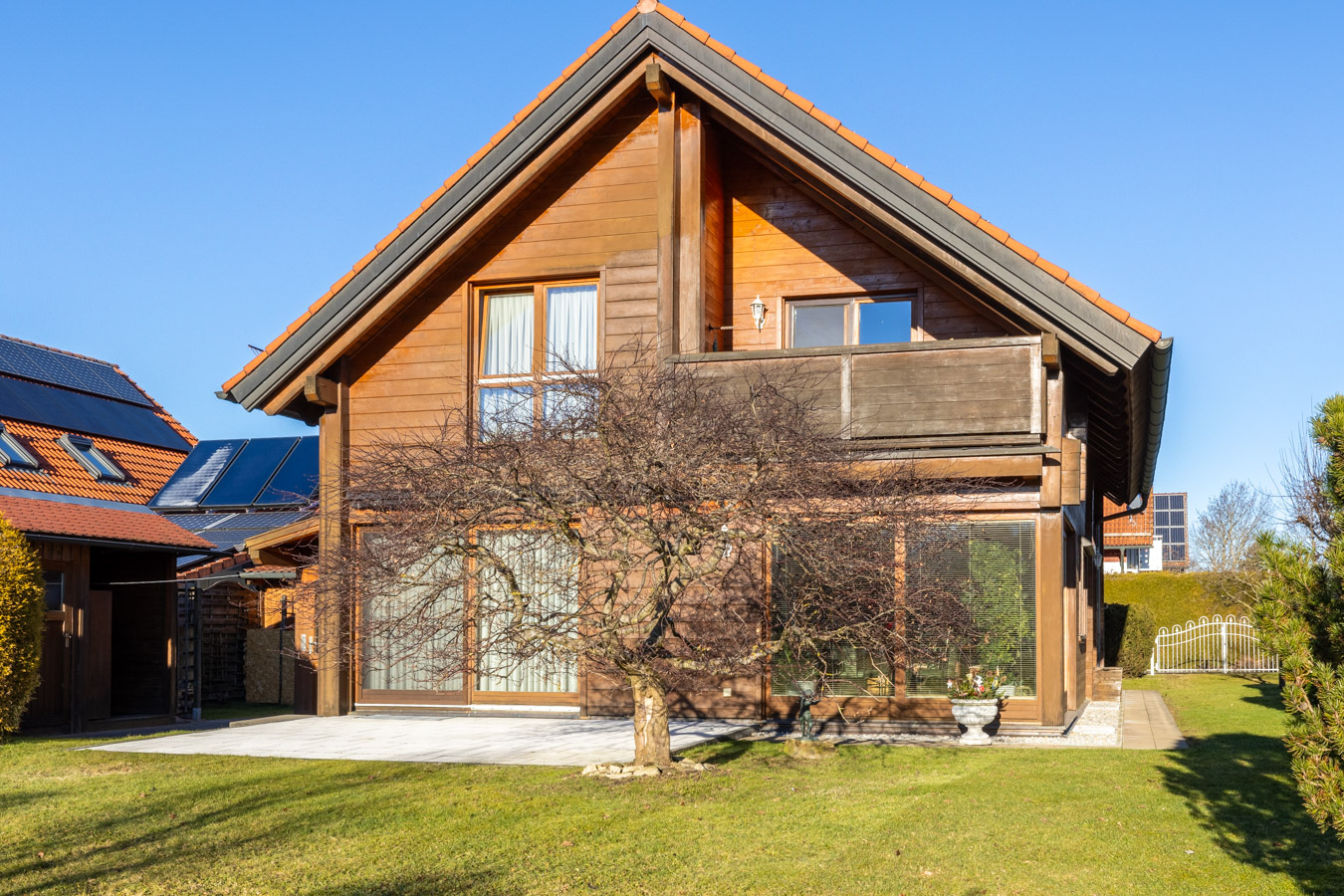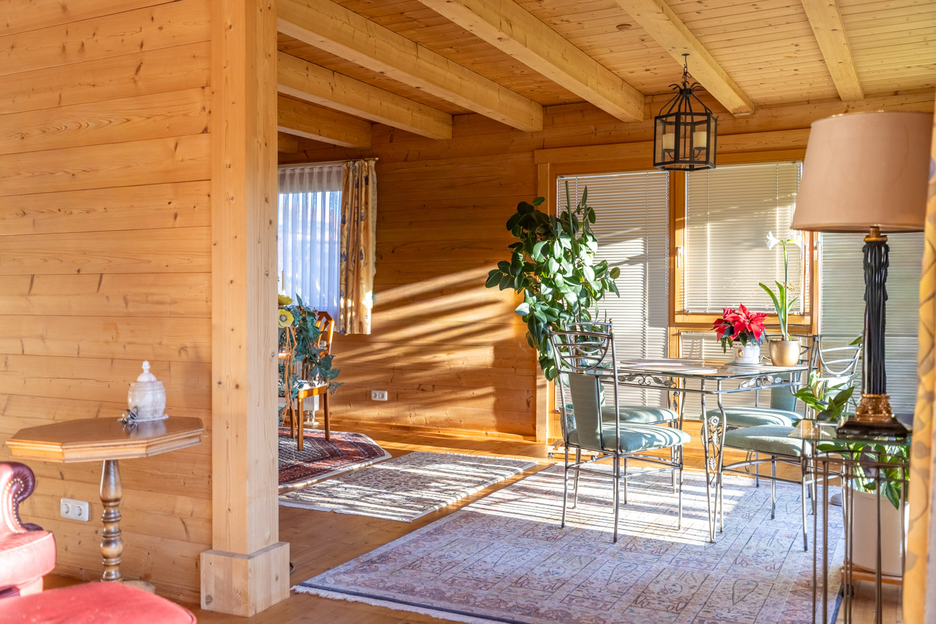 Dieses besondere Einfamilienhaus in ruhiger Ortsrandlage vermittelt vom ersten Moment an ein Gefühl von Wärme, Geborgenheit und natürlicher Wohnqualität. Die massive Holzbauweise kombiniert mit sorgfältiger Handwerksarbeit schaffen ein angenehmes Raumklima und ein Zuhause, das Ruhe ausstrahlt. Im Inneren prägen hochwertige Massivholzböden und -türen sowie der zentrale Kachelofen den Wohn- und Essbereich, ein Ort zum Ankommen und Wohlfühlen. Große Fensterflächen, der lichtdurchflutete Wintergarten und der Balkon eröffnen einen freien Blick ins Grüne und holen die Natur direkt ins Haus. Der großzügige Keller erweitert den Wohnraum um vielseitige Möglichkeiten: Entspannung in der Sauna, Platz für Hobbys oder Rückzug – mit direktem Zugang in den Garten. Abgerundet wird dieses stimmige Wohnkonzept durch eine Doppelgarage mit überdachtem Hauszugang und eine zeitgemäße energetische Ausstattung. Ein Haus für Menschen, die Natürlichkeit, Komfort, die München- und Ammersee-nahe Lage und ein besonderes Wohngefühl zu schätzen wissen.