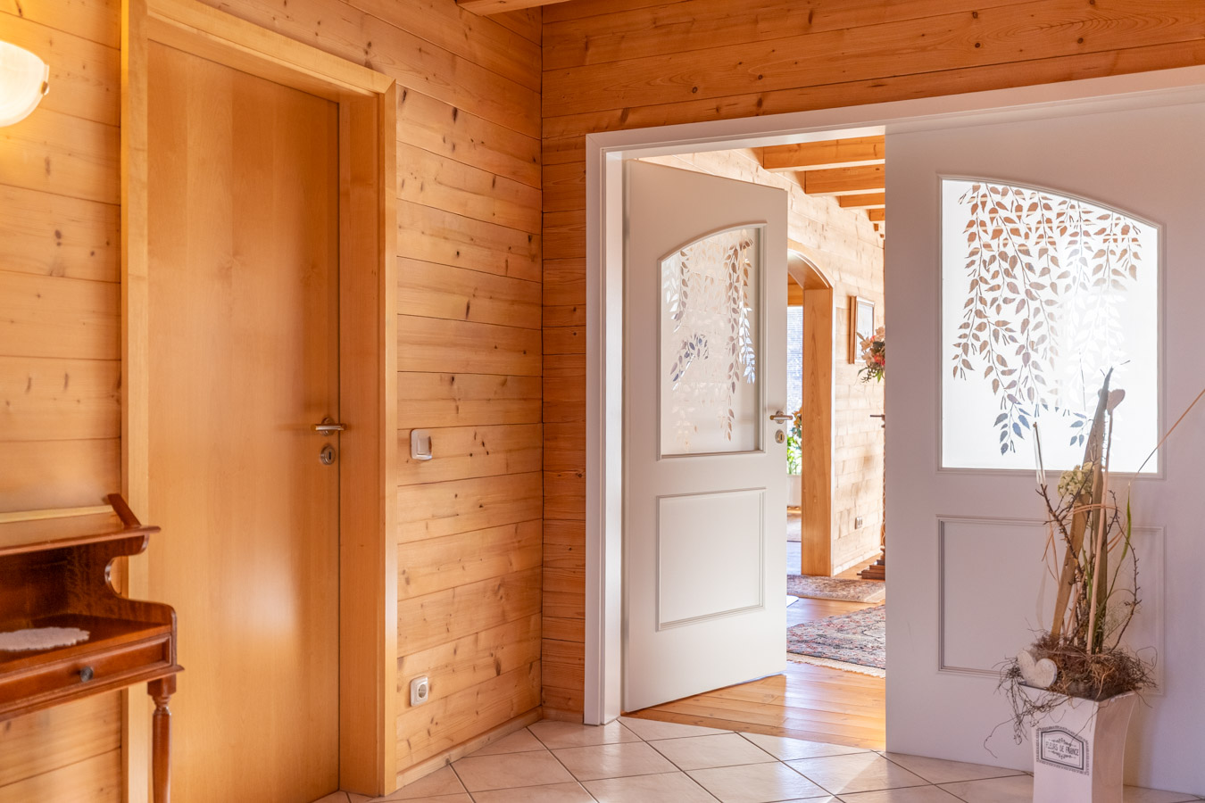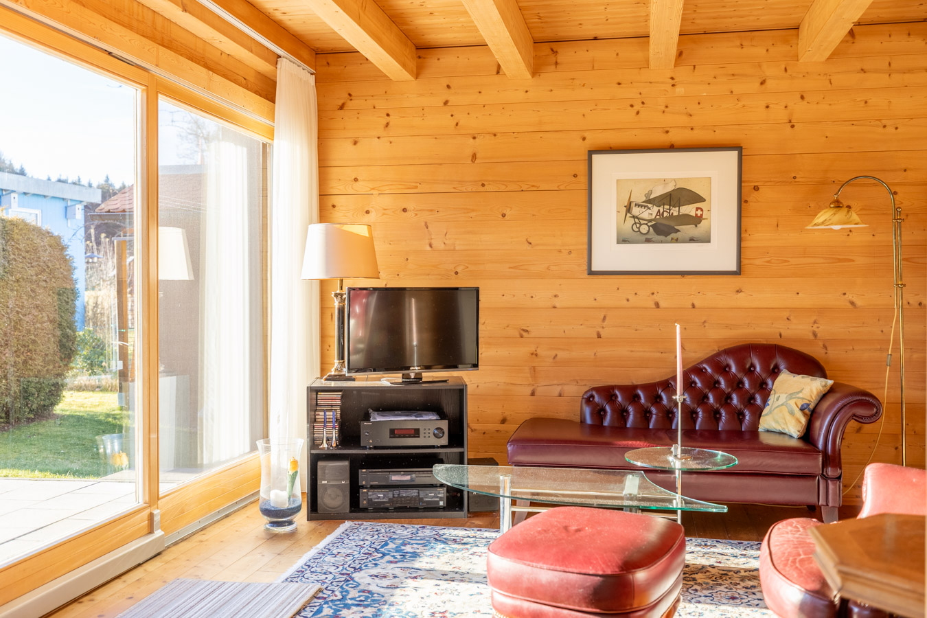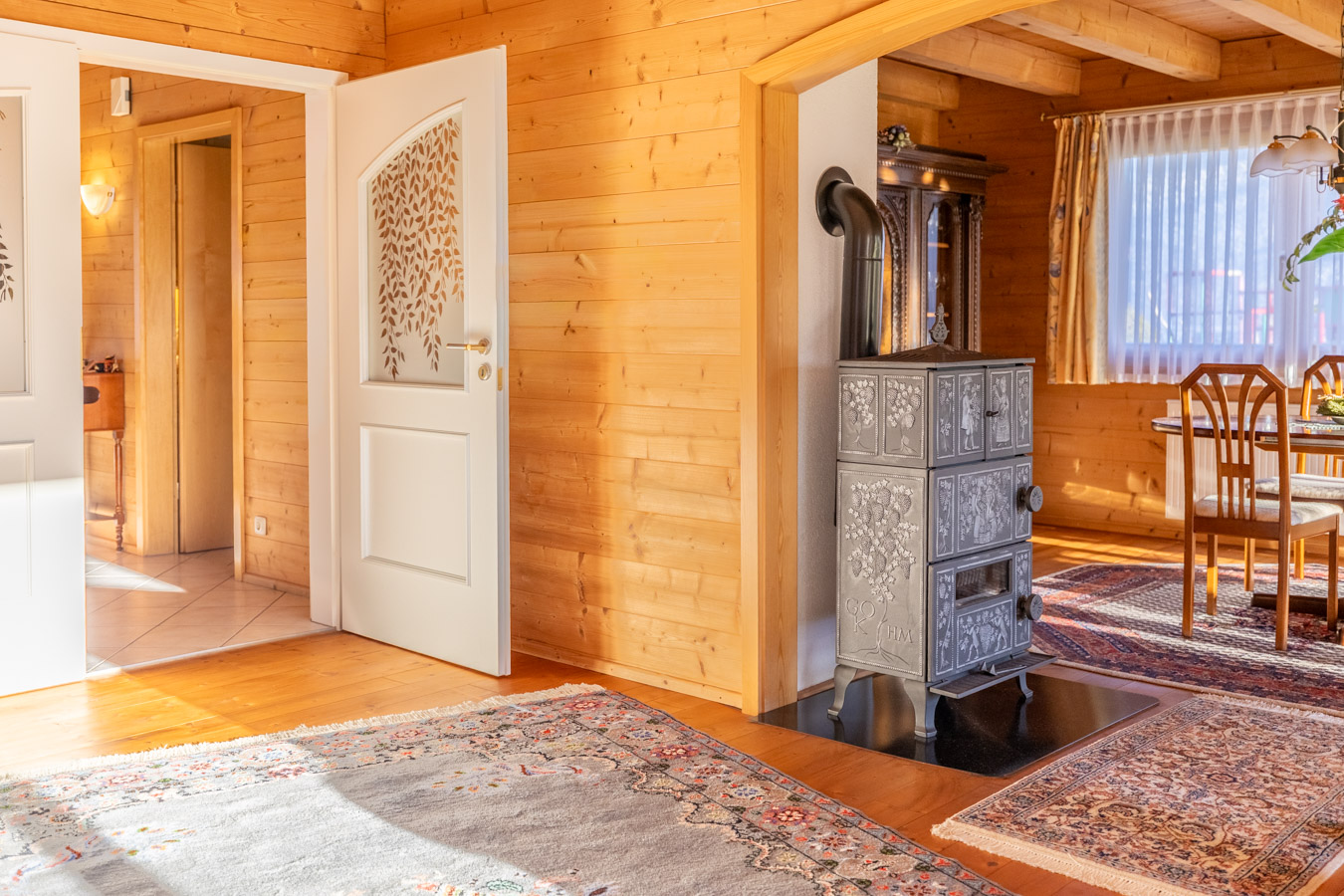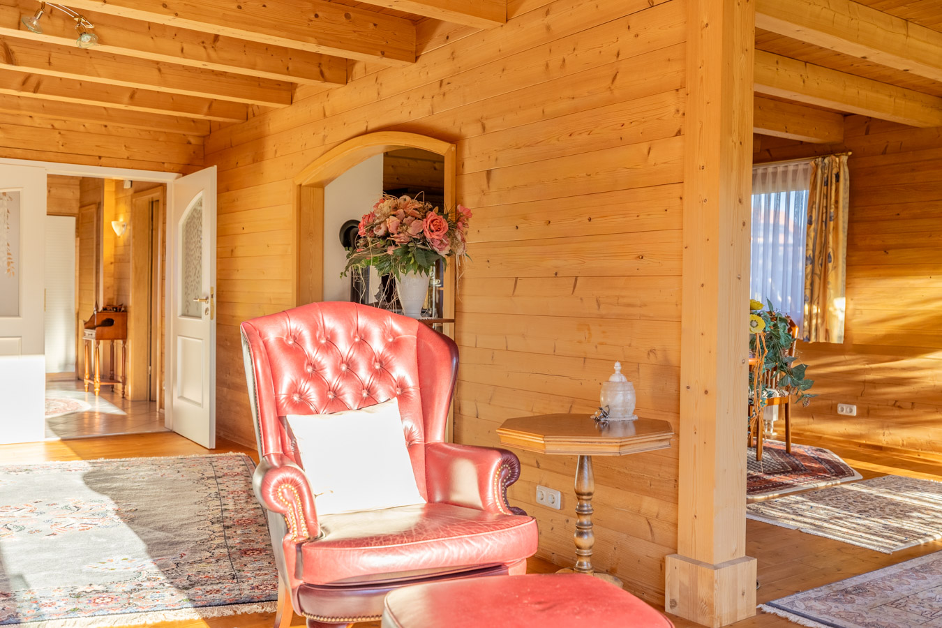 Dieses besondere Einfamilienhaus in ruhiger Ortsrandlage vermittelt vom ersten Moment an ein Gefühl von Wärme, Geborgenheit und natürlicher Wohnqualität. Die massive Holzbauweise kombiniert mit sorgfältiger Handwerksarbeit schaffen ein angenehmes Raumklima und ein Zuhause, das Ruhe ausstrahlt. Im Inneren prägen hochwertige Massivholzböden und -türen sowie der zentrale Kachelofen den Wohn- und Essbereich, ein Ort zum Ankommen und Wohlfühlen. Große Fensterflächen, der lichtdurchflutete Wintergarten und der Balkon eröffnen einen freien Blick ins Grüne und holen die Natur direkt ins Haus. Der großzügige Keller erweitert den Wohnraum um vielseitige Möglichkeiten: Entspannung in der Sauna, Platz für Hobbys oder Rückzug – mit direktem Zugang in den Garten. Abgerundet wird dieses stimmige Wohnkonzept durch eine Doppelgarage mit überdachtem Hauszugang und eine zeitgemäße energetische Ausstattung. Ein Haus für Menschen, die Natürlichkeit, Komfort, die München- und Ammersee-nahe Lage und ein besonderes Wohngefühl zu schätzen wissen.