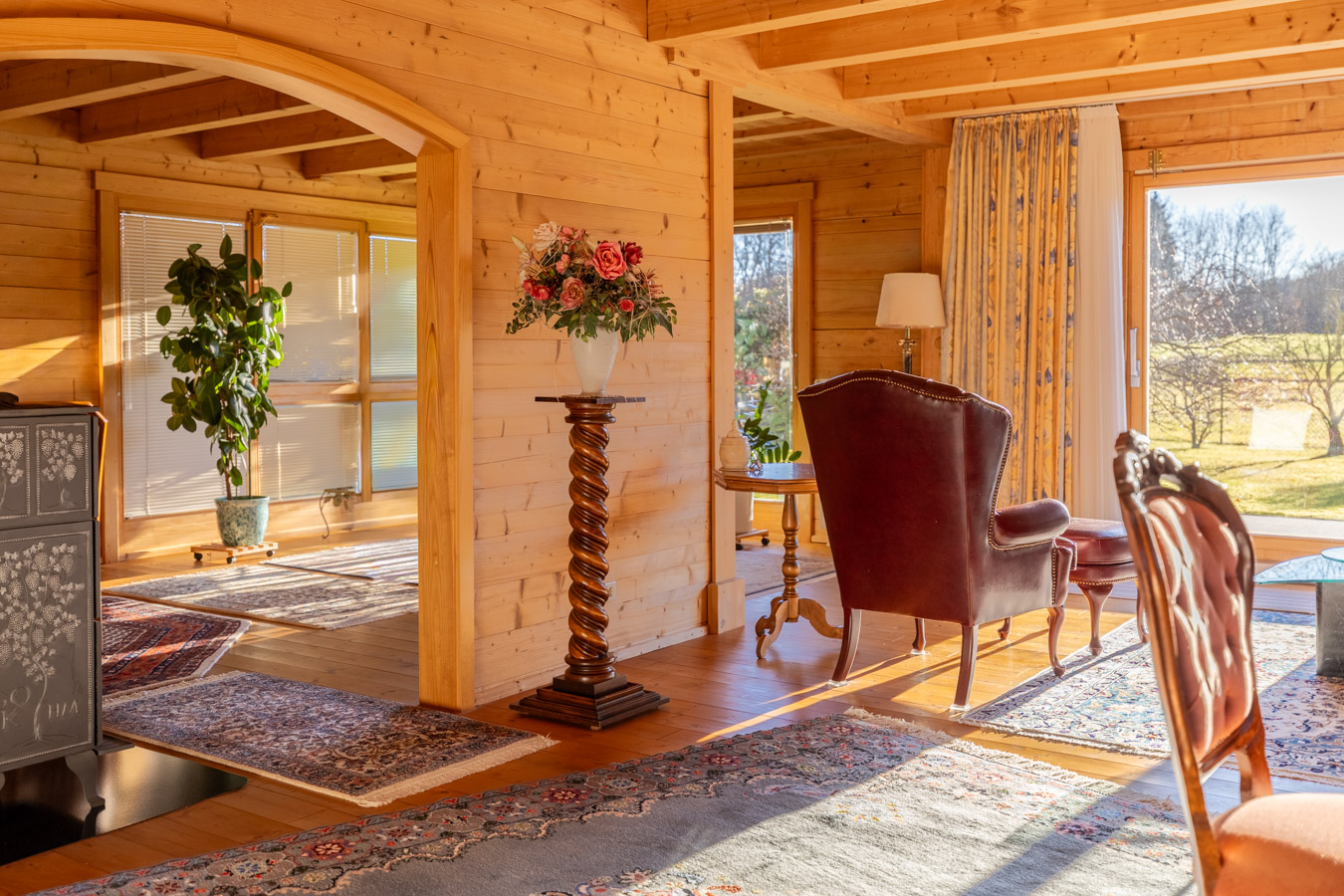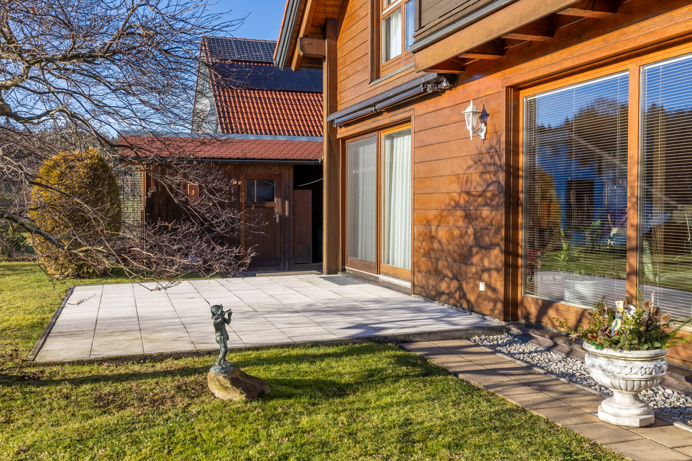 Baubiologisches Blockbohlen-Massivhaus mit neuer PV-Anlage in wunderbarer Ortsrandlage.