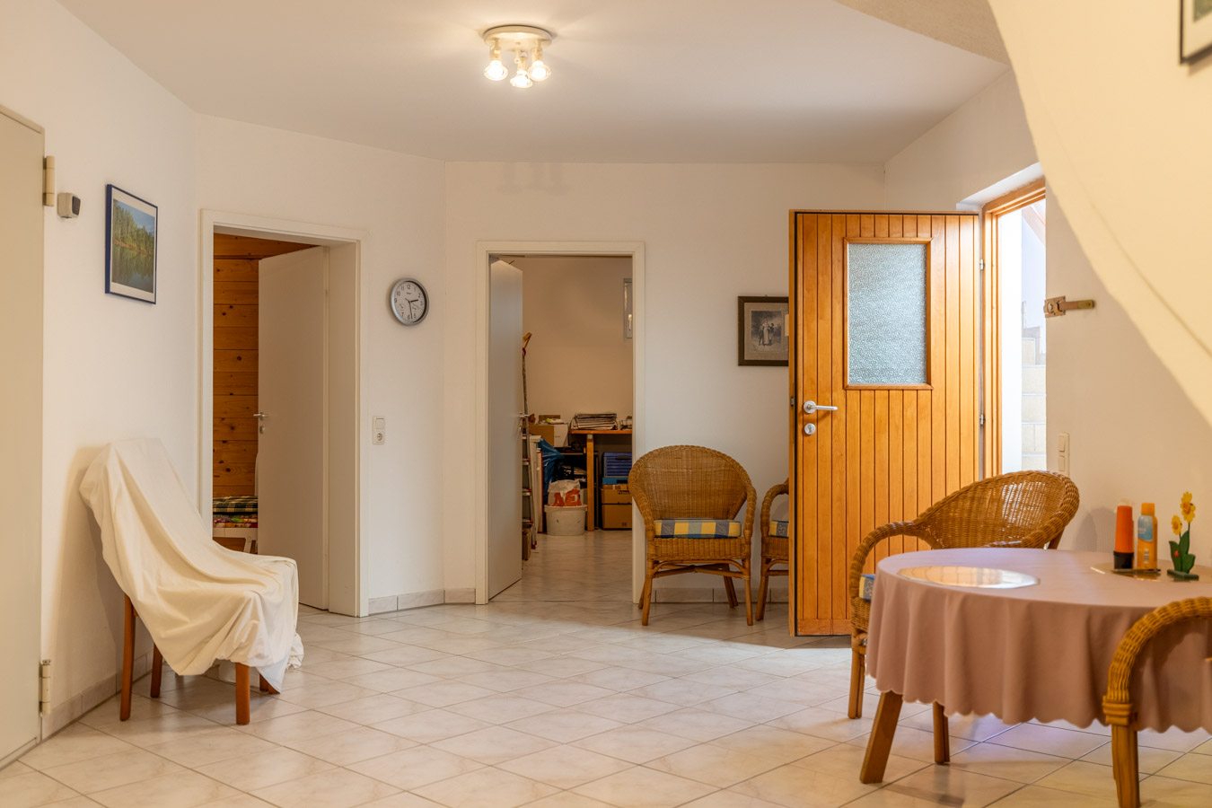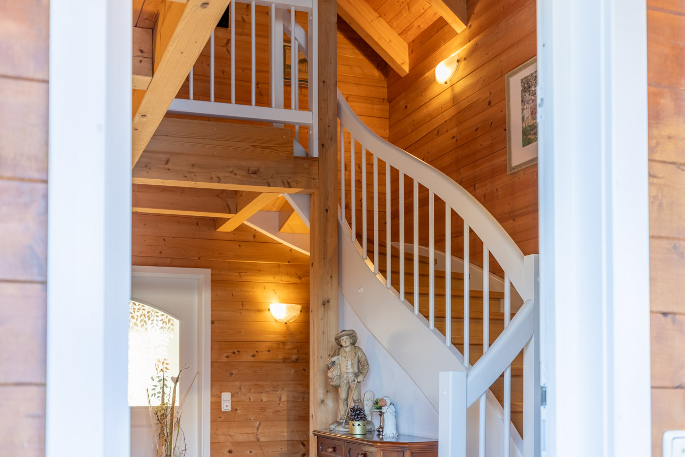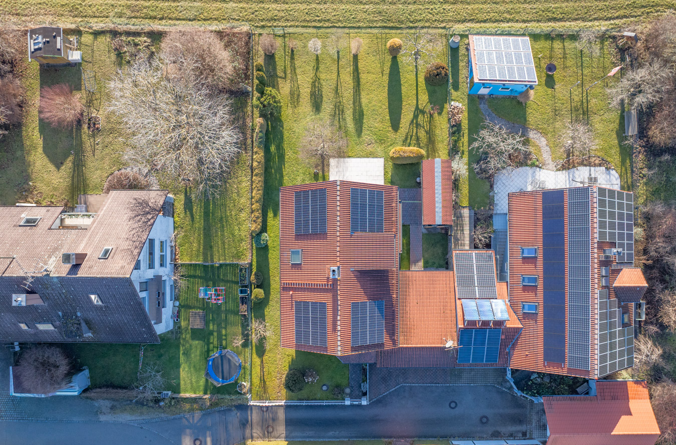 – Massivholz-Blockbohlenhaus in baubiologischer Handwerkerqualität – Zusätzlicher Holzfaser-Vollwärmeschutz an 3 Seiten (5+2 cm) – Voll unterkellert mit 6 cm perimeter-gedämmtem Beton – Sichtdachstuhl mit Aufdach-Isolierung – Holz-Isolierglasfenster, teilweise Insektenschutzgitter – Keller-Raumhöhe ca. 2,55 M. – Kelleraußentreppe zum Garten – Doppelgarage in Holzständerbauweise mit überdachtem Hauszugang – Elektrische Garagentoranschluss, Starkstromanschluss (z.B. für Wallbox) – PV-Anlage (12-2023), 9,84 KwP, NP ca. 26.000€ – PV-Speicher-Akku (12-2023) mit 5 KW – Akku/PV mit eigenem Notstromversorgungssystem – Überdachter Eingangsbereich – Balkon mit Blick ins freie Feld – Wintergarten-Verglasung im Erdgeschoss mit Feldblick – Massivholzböden und -türen – Kaminofen zentral im Wohn- Essbereich – Zweiter Kaminofen im Studio DG – Einbauküche – Sauna und Dusche im Keller – Gartenhaus mit Strom und Licht – Zusätzlicher beheizter Hobbyraum im Keller – Öl-Zentralheizung (1999) mit Heizkörpern – Aktueller Verbrauch nur ca. 800L ÖL + 8-10 Ster Holz / Jahr *Die angegebene Grundstücksgröße setzt sich zusammen aus Hausgrundstück (593m²) und 1/2 anteiligem Weg (133 m²/2)