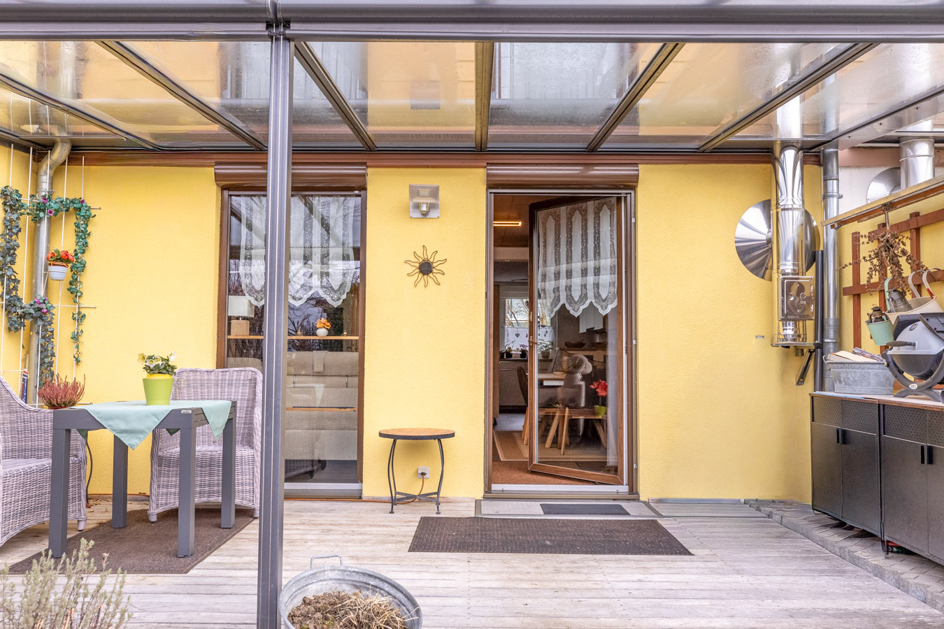 Highlights sind die nach Süden ausgerichtete Terrasse mit Überdachung, und der hübsche Garten, die zum Entspannen und Genießen im Freien einladen. Für zusätzliche Möglichkeiten sorgt der Hobbykeller mit Dusche.