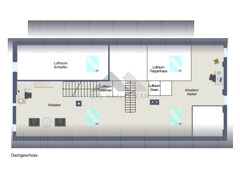 Viel interessanter jedoch ist das enorme Ausbaupotential, das das Haus bietet: Auf drei weiteren Geschossen ist enorm viel Platz für einen weiteren Ausbau, der bereits geplant und mit dem Denkmalschutz sowie Bauamt Landsberg abgesprochen wurde.Eine Genehmigung des Ausbaus wurde in Aussicht gestellt.