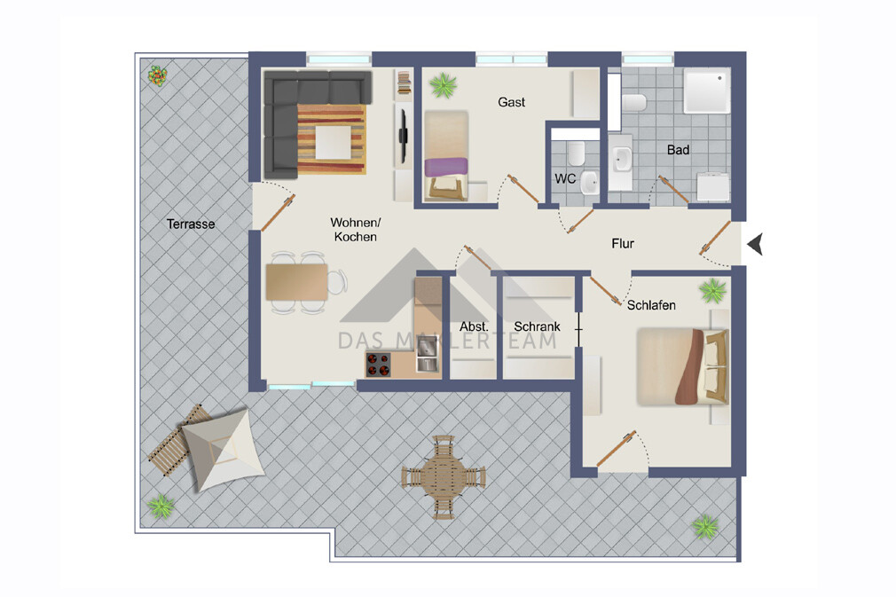 – Große Süd-Dachterrasse „ums Eck“ mit mehreren Zugängen