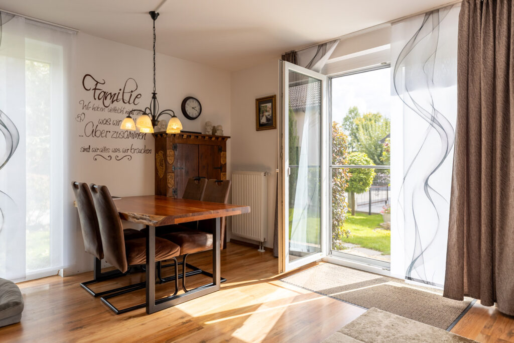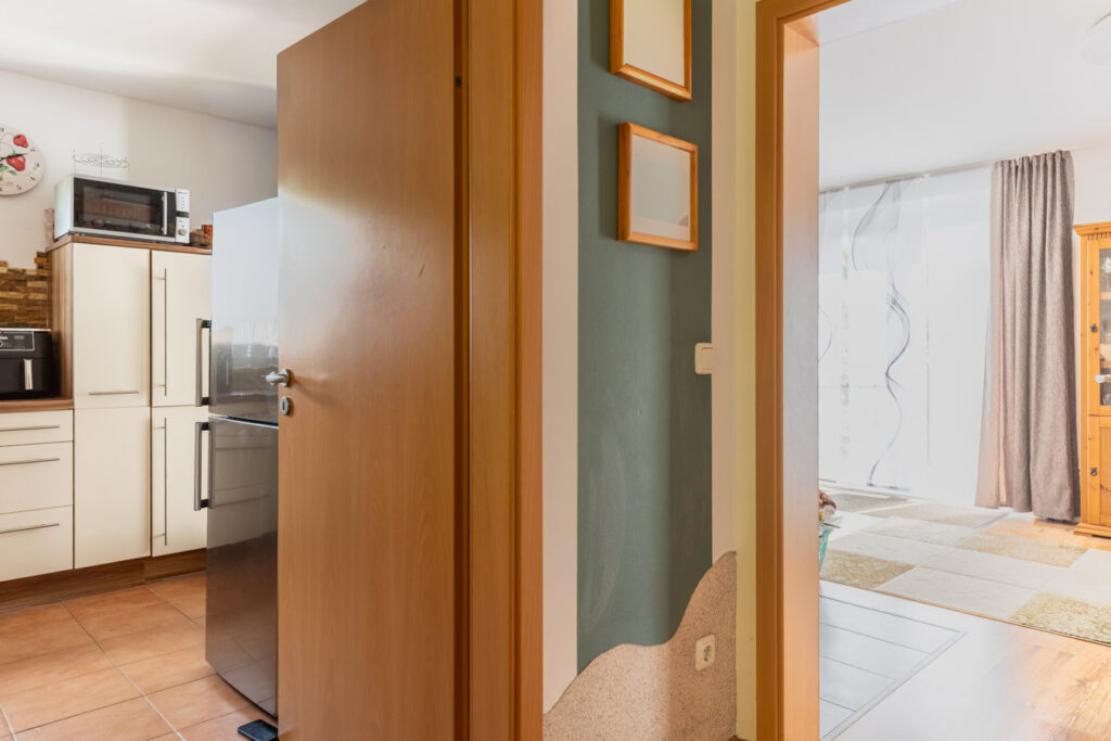 Im Erdgeschoss empfängt Sie ein großzügiger, nach Süden ausgerichteter Wohn- und Essbereich mit direktem Zugang zur großen, lichtdurchfluteten Küche mit Essplatz – ideal für gesellige Abende und Familienmomente. Ein praktischer Hauswirtschaftsraum sowie ein modernes Gäste-WC sorgen zusätzlich für Komfort und Alltagstauglichkeit. Das Obergeschoss beherbergt die Schlafräume sowie ein geräumiges Badezimmer mit bodengleicher Dusche. Zwei Stellplätze, einer unter dem Carport direkt am Haus, bieten kurze Wege und runden das Gesamtpaket ab.