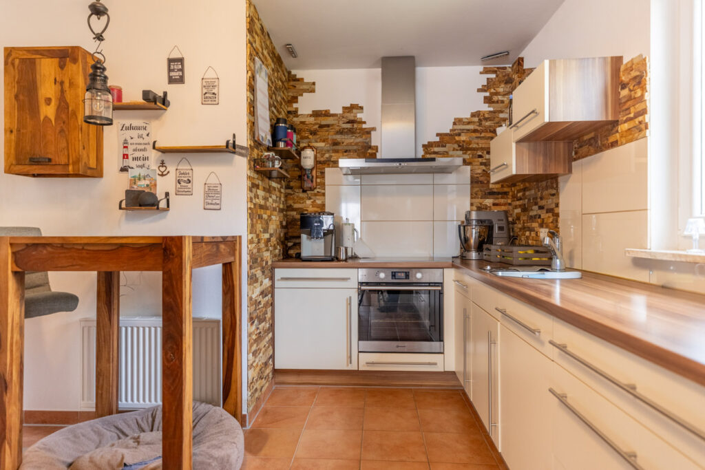 – Einbauküche mit Frühstücksplatz